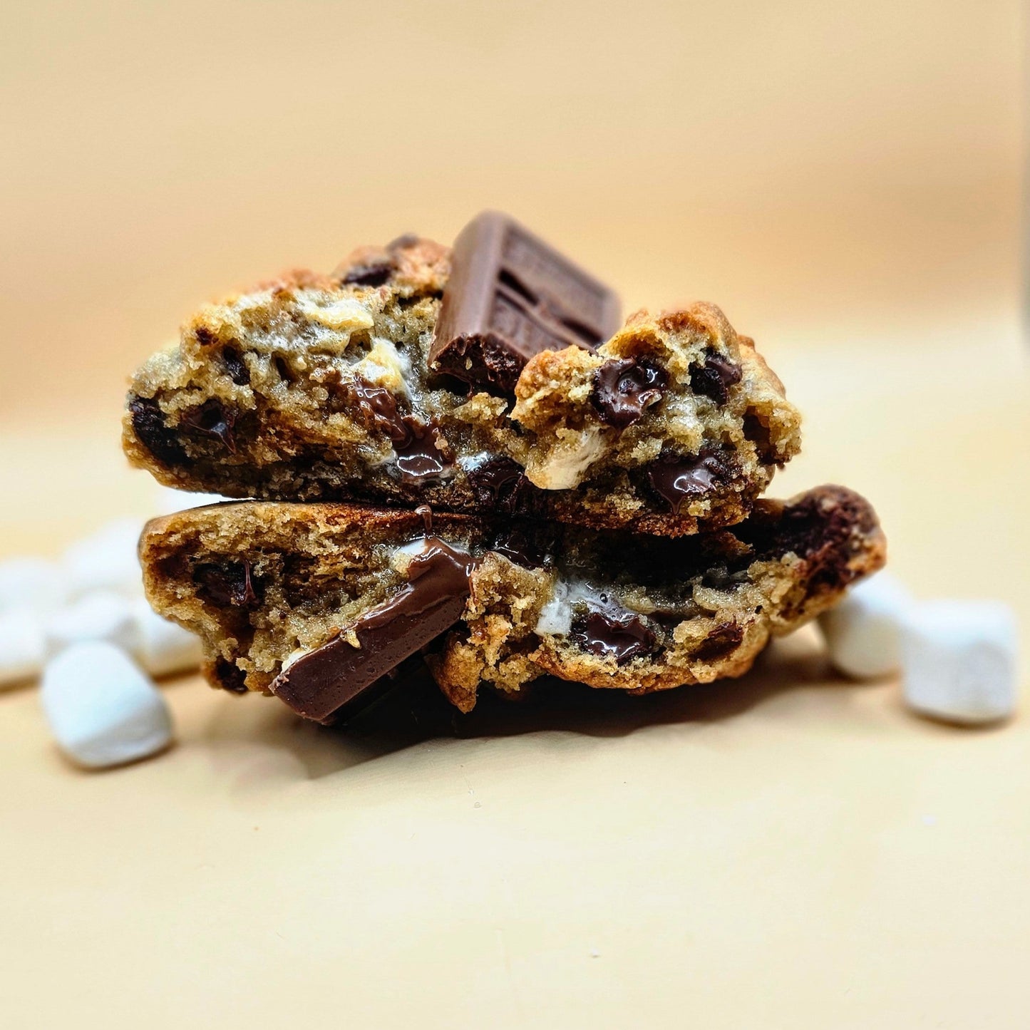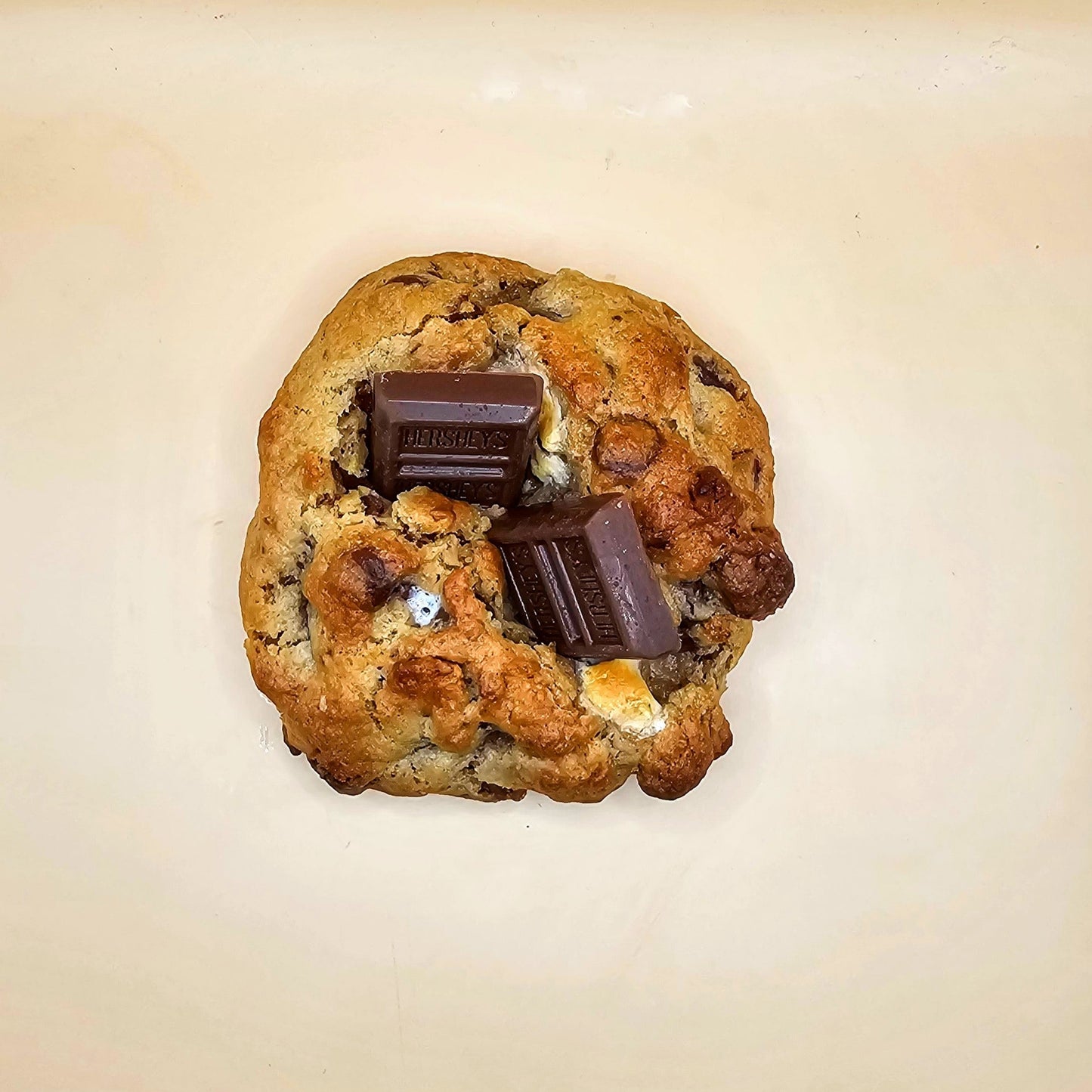 Our signature vanilla dough with graham crackers cookies stuffed with marshmallow, topped with Hershey's milk chocolate, and loaded with milk chocolate chips. Yum!